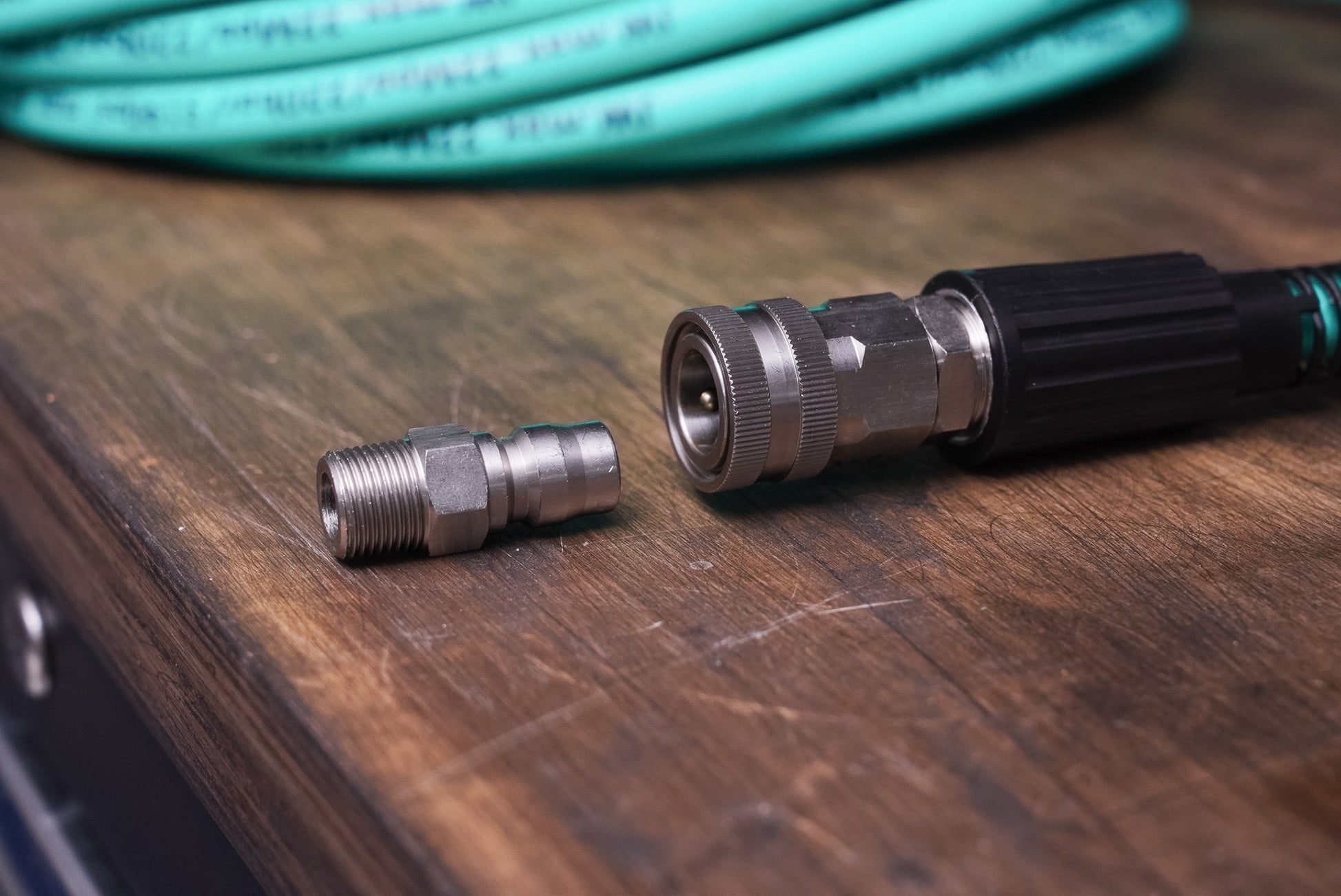 片側が海外規格3/8カプラー片側が国内規格3/8カプラーという異なる規格で制作しました。高圧洗浄機側が▼のようなプラグの場合にマッチします。